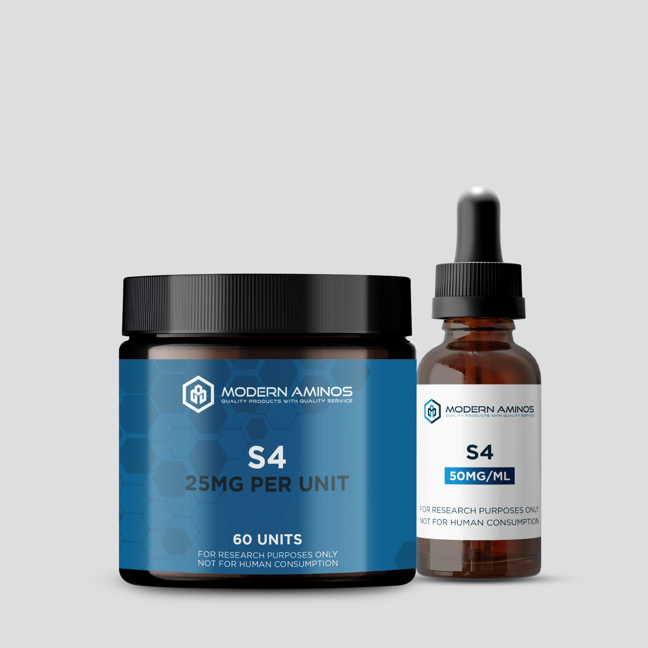 One of the original and most researched SARMs, and a consistent bestseller, S4 (andarine) is one of the most popular selective androgen receptor modulators (SARMs) offered here at Modern Aminos. To accommodate the varied needs of researchers, we offer two versions of this product: S4 25MG Units x 60 – Dry-Fill Format S4 50MG/ML x 30ML – Liquid Format Precision, purity, and quality are always our biggest priorities here at Modern Aminos , hence why we routinely test our S4 products for authenticity and quality. For more information regarding the quality and authenticity of our products, please visit our COAs page. You may also contact us at cs@modernaminos.com Why Choose Modern Aminos? Modern Aminos is a trusted US Research Chemicals vendor and the best place to buy SARMs online. If you’re looking to buy research chemicals online, our one-stop-shop offers a wide range of third-party tested, high-quality research chemicals made in the USA — including highest quality amino acids , quality nootropics like Piracetam 800mg and Noopept 30mg, peptides , research oils , and more!